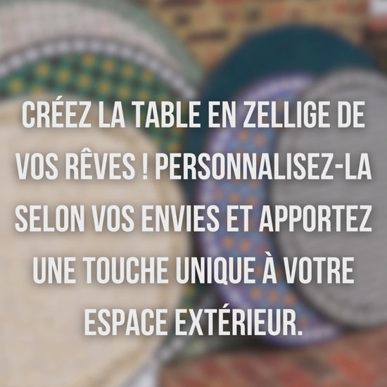 Chez nous, chaque table en zellige est unique, créée selon vos goûts et vos besoins. Nous mettons à votre disposition 6 options de personnalisation pour vous permettre de concevoir une table qui s’intègre parfaitement à votre espace et à votre style :